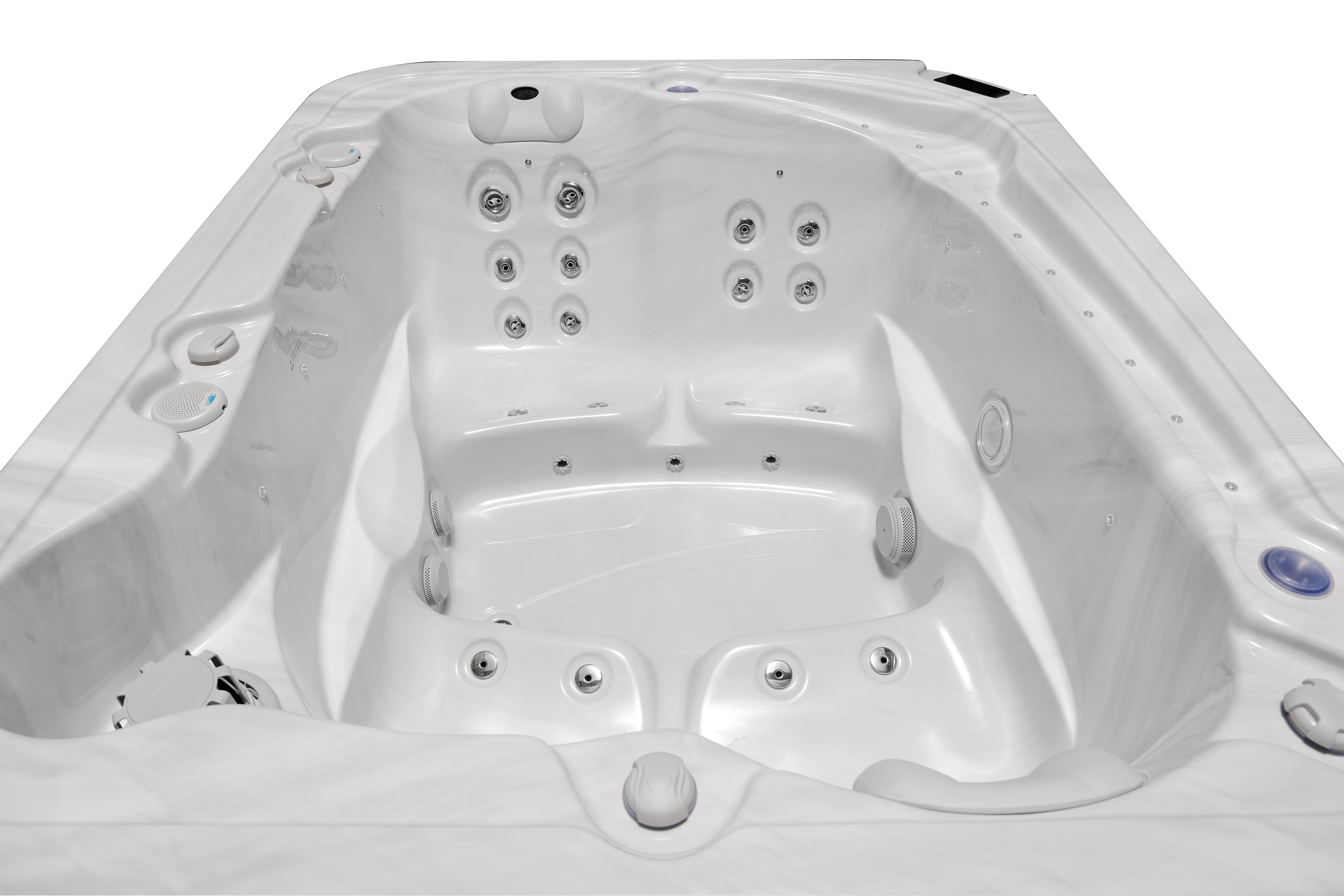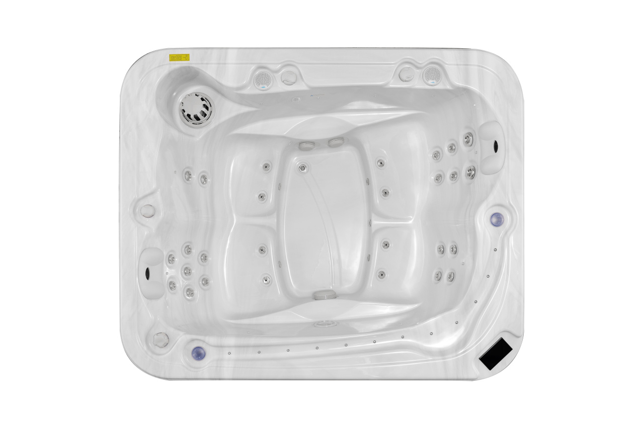 Чаша вашего спа-бассейна изготовлена из Lucite® Sterling Silver — это не просто акрил, а эталонный материал премиум-класса, производимый в США по запатентованным технологиям. В отличие от обычного акрила, который со временем может терять прозрачность и желтеть, Lucite гарантирует: