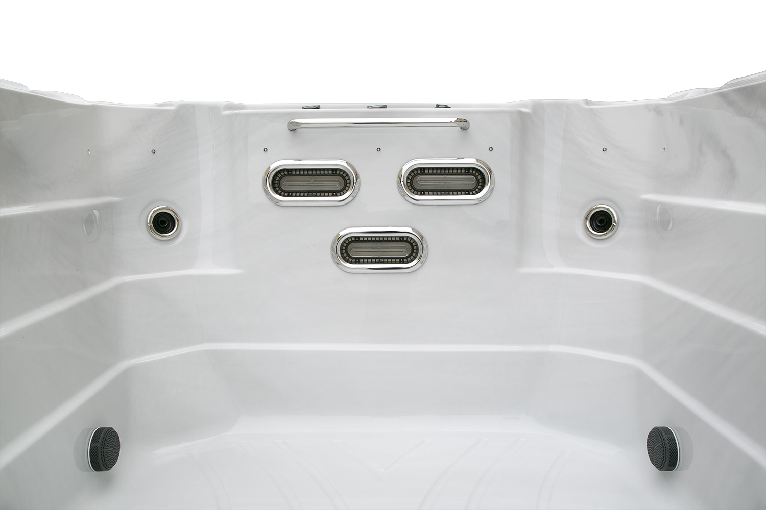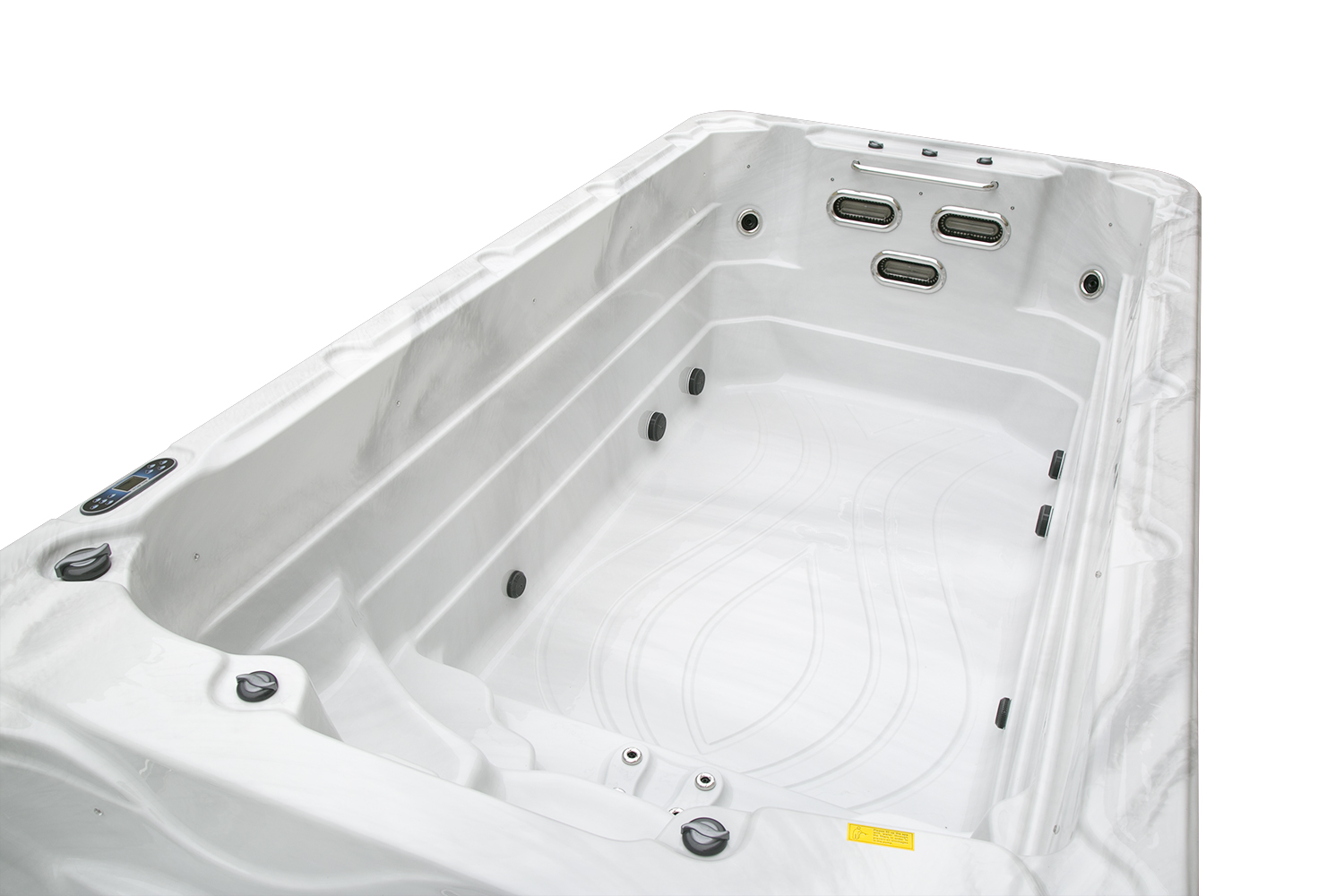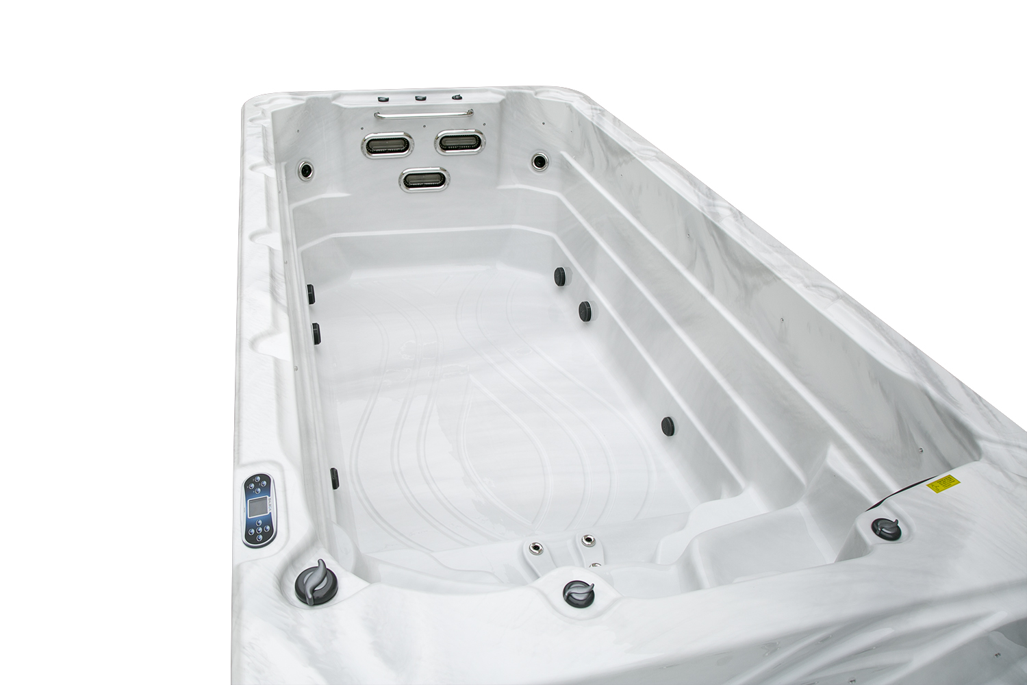 Три прозрачных поручня из пищевого пластика обеспечивают удобство и безопасность при перемещении между зонами и во время плавания.